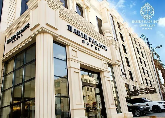 Offering cars for rent, as well as Wi-Fi throughout the property, the 4-star Harir Palace Hotel Amman is 4.5 km from Mecca Street. Located around a 25-minute walk from the supported Mosque of the University of Jordan, this contemporary hotel offers views of the city and a swimming pool.